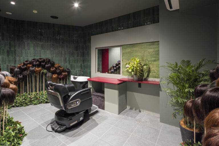 豊富なサンプルの中から、髪色や毛量、質感を確かめながら、最適なウィッグを選びます。