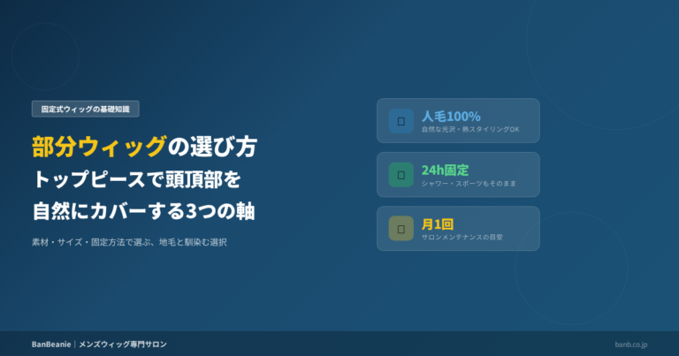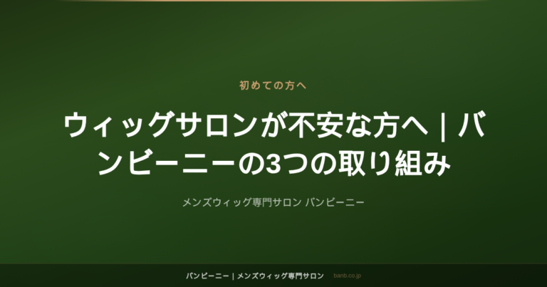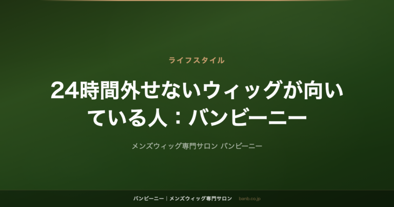 「バンビーニー」は、薄毛や髪の悩みを持つ男性のために、自然で快適なウィッグを提供しています。独自技術により、365日24時間いつでも安心して着けたまま過ごせます。