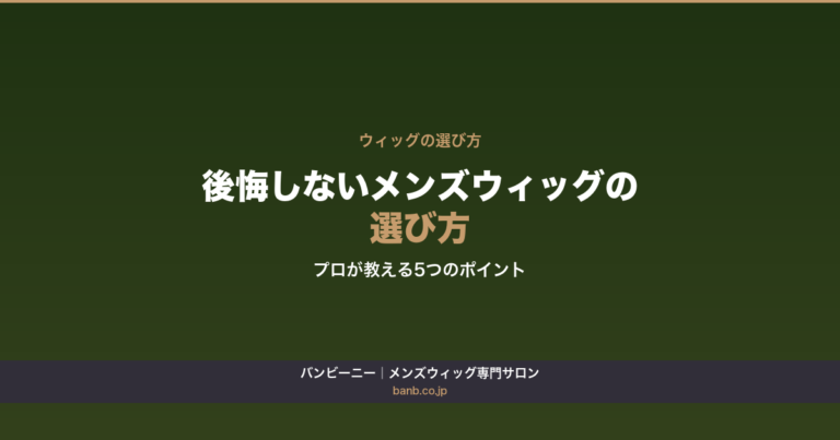メンズウィッグで後悔しないための選び方を5つのポイントで解説。髪型のトレンド・ライフスタイルとの相性・固定方法・素材・アフターサポートまで、サロンスタッフが現場の視点でお伝えします。