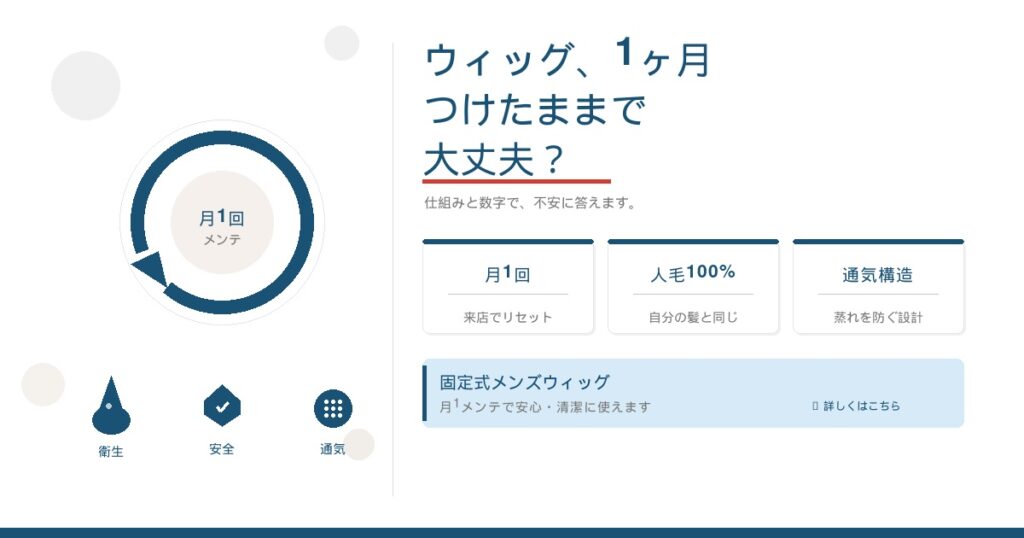 「1ヶ月外さないって、本当に大丈夫なの?」——固定式ウィッグに興味を持った方が、最初に感じる疑問はほぼここに集約されます。衛生面、頭皮への影響、においやかゆみ。正直に言うと、その不安は当然です。この記事では、その疑問に数字と仕組みで答えます。